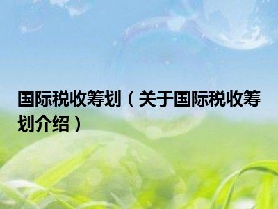 国际税收筹划(关于国际税收筹划介绍)