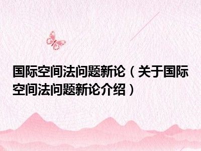 国际空间法问题新论(关于国际空间法问题新论介绍)
