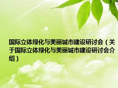 国际立体绿化与美丽城市建设研讨会(关于国际立体绿化与美丽城市建设研讨会介绍)