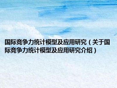 国际竞争力统计模型及应用研究(关于国际竞争力统计模型及应用研究介绍)