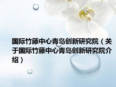 大家好,小迪来为大家解答以上的问题。国际竹藤中心青岛创新研究院,关于国际竹藤中心青岛创新研究院介绍这个很多人还不知道,现在让我们一起来看看吧!