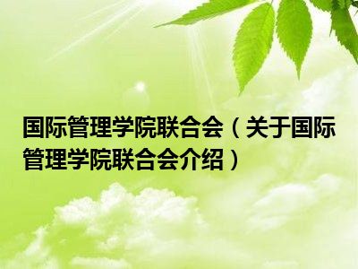 国际管理学院联合会(关于国际管理学院联合会介绍)