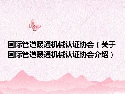 国际管道暖通机械认证协会(关于国际管道暖通机械认证协会介绍)