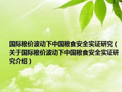 导读 大家好,小迪来为大家解答以上的问题。国际粮价波动下中国粮食安全实证研究,关于国际粮价波动下中国粮食安全实证研究介绍这个很多人还不知