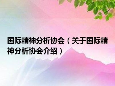 导读 大家好,小迪来为大家解答以上的问题。国际精神分析协会,关于国际精神分析协会介绍这个很多人还不知道,现在让我们一起来看看吧!1、 国