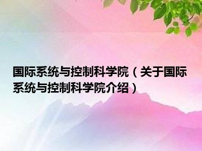 大家好,小迪来为大家解答以上的问题。国际系统与控制科学院,关于国际系统与控制科学院介绍这个很多人还不知道,现在让我们一起来看看吧!