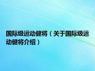 大家好,小迪来为大家解答以上的问题。国际级运动健将,关于国际级运动健将介绍这个很多人还不知道,现在让我们一起来看看吧!