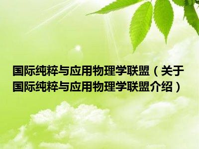 国际纯粹与应用物理学联盟(关于国际纯粹与应用物理学联盟介绍)