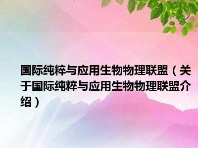 国际纯粹与应用生物物理联盟(关于国际纯粹与应用生物物理联盟介绍)