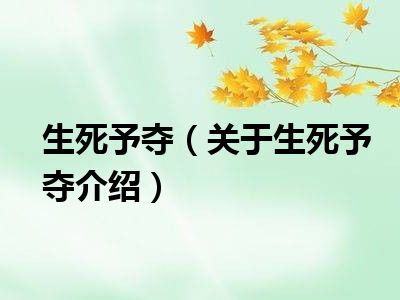 大家好,小钱来为大家讲解以上的问题。生死予夺,关于生死予夺介绍这个很多人还不知道,我们一起来看看!