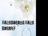 大家好,我是东南,我来为大家解答以上问题不再让你孤单经典台词,不再让你孤单经典句子很多人还不知道,现在让我们一起来看看吧!大家好, 浏览全文>>