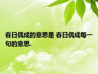 春日偶成的意思是 春日偶成每一句的意思.