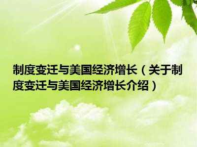 制度变迁与美国经济增长(关于制度变迁与美国经济增长介绍)