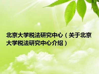 北京大学税法研究中心(关于北京大学税法研究中心介绍)