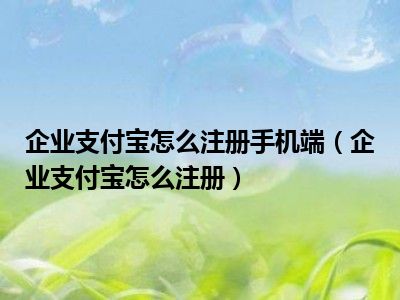 企业支付宝怎么注册手机端(企业支付宝怎么注册)