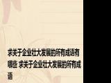 大家好,我是东南,我来为大家解答以上问题求关于企业壮大发展的所有成语有哪些,求关于企业壮大发展的所有成语很多人还不知道,现在让我们 浏览全文>>