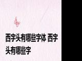 大家好,我是东南,我来为大家解答以上问题西字头有哪些字体,西字头有哪些字很多人还不知道,现在让我们一起来看看吧!大家好,业小编来为 浏览全文>>