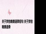 大家好,我是东南,我来为大家解答以上问题关于梦的唯美语录短句,关于梦的唯美语录很多人还不知道,现在让我们一起来看看吧!大家好,业小 浏览全文>>
