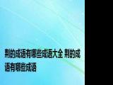 大家好,我是东南,我来为大家解答以上问题荆的成语有哪些成语大全,荆的成语有哪些成语很多人还不知道,现在让我们一起来看看吧!大家好, 浏览全文>>