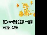 大家好,我是东南,我来为大家解答以上问题聊天emm是什么意思,em在聊天中是什么意思很多人还不知道,现在让我们一起来看看吧!大家好,业小 浏览全文>>