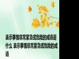 大家好,我是东南,我来为大家解答以上问题表示事情非常紧急或危险的成语是什么,表示事情非常紧急或危险的成语很多人还不知道,现在让我们 浏览全文>>