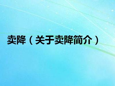 大家好,小金来为大家解答以上的问题。卖降,关于卖降简介这个很多人还不知道,现在让我们一起来看看吧!