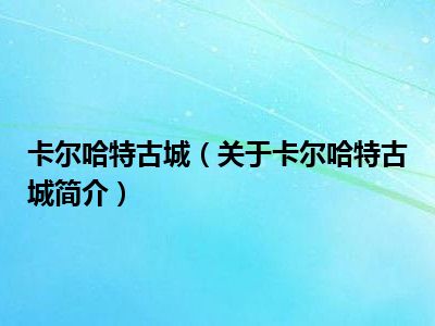 卡尔哈特古城(关于卡尔哈特古城简介)