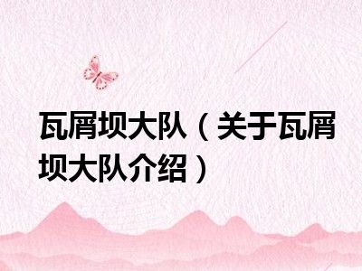 大家好,小钱来为大家讲解以上的问题。瓦屑坝大队,关于瓦屑坝大队介绍这个很多人还不知道,我们一起来看看!
