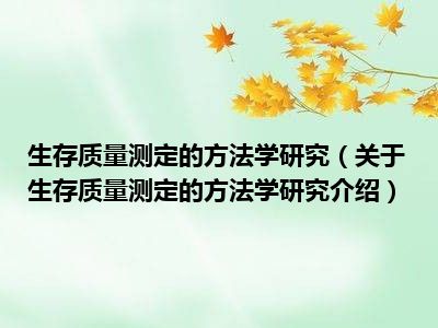 生存质量测定的方法学研究(关于生存质量测定的方法学研究介绍)