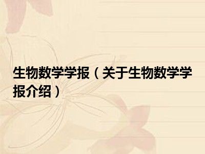 1、 《生物数学学报》是1986年由中国数学会生物数学学会创办的学术期刊。