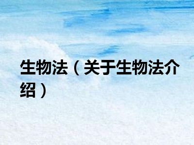 大家好,小钱来为大家讲解以上的问题。生物法,关于生物法介绍这个很多人还不知道,我们一起来看看!