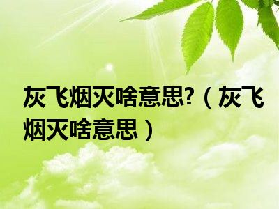 灰飞烟灭啥意思?(灰飞烟灭啥意思)