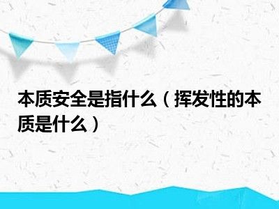 导读 大家好,小石来为大家解答以上问题。本质安全是指什么,挥发性的本质是什么这个很多人还不太了解,现在一起来瞧瞧吧!