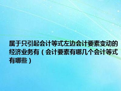 导读 大家好,小石来为大家解答以上问题。属于只引起会计等式左边会计要素变动的经济业务有,会计要素有哪几个会计等式有哪些这个很多人还不太了