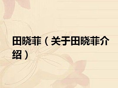 大家好,小钱来为大家讲解以上的问题。田晓菲,关于田晓菲介绍这个很多人还不知道,我们一起来看看!