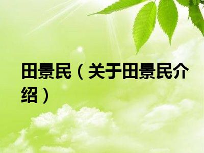 大家好,小钱来为大家讲解以上的问题。田景民,关于田景民介绍这个很多人还不知道,我们一起来看看!