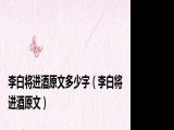 【李白将进酒原文】《将进酒》是唐代诗人李白的代表作之一,全诗气势豪放、情感奔放,展现了诗人对人生短暂、及时行乐的感慨,以及对生命价 浏览全文>>