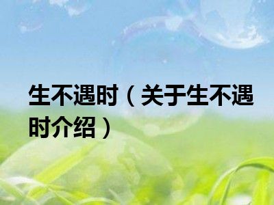 1、 生不遇时,汉语词语,拼音是shēng bù yù shí,意思是生下来没有遇到好时候,旧时指命运不好。