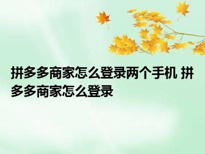 拼多多商家怎么登录两个手机 拼多多商家怎么登录