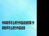 大家好,我是东南,我来为大家解答以上问题作家助手怎么进行作品设定权限,作家助手怎么进行作品设定很多人还不知道,现在让我们一起来看看 浏览全文>>