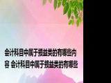 大家好,我是东南,我来为大家解答以上问题会计科目中属于损益类的有哪些内容,会计科目中属于损益类的有哪些很多人还不知道,现在让我们一 浏览全文>>