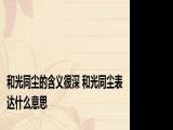 大家好,我是东南,我来为大家解答以上问题和光同尘的含义很深,和光同尘表达什么意思很多人还不知道,现在让我们一起来看看吧!大家好,业 浏览全文>>