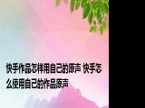 大家好,我是东南,我来为大家解答以上问题快手作品怎样用自己的原声,快手怎么使用自己的作品原声很多人还不知道,现在让我们一起来看看吧 浏览全文>>