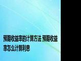 大家好,我是东南,我来为大家解答以上问题预期收益率的计算方法,预期收益率怎么计算利息很多人还不知道,现在让我们一起来看看吧!大家好 浏览全文>>