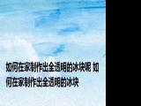 大家好,我是东南,我来为大家解答以上问题如何在家制作出全透明的冰块呢,如何在家制作出全透明的冰块很多人还不知道,现在让我们一起来看 浏览全文>>