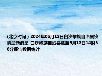 (北京时间)2024年05月13日白沙黎族自治县疫情最新消息-白沙黎族自治县截至5月13日14时58分疫情数据统计